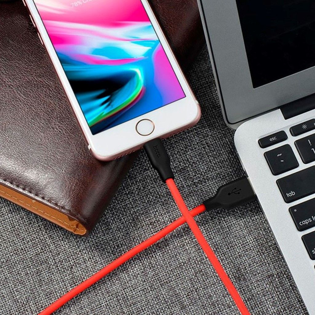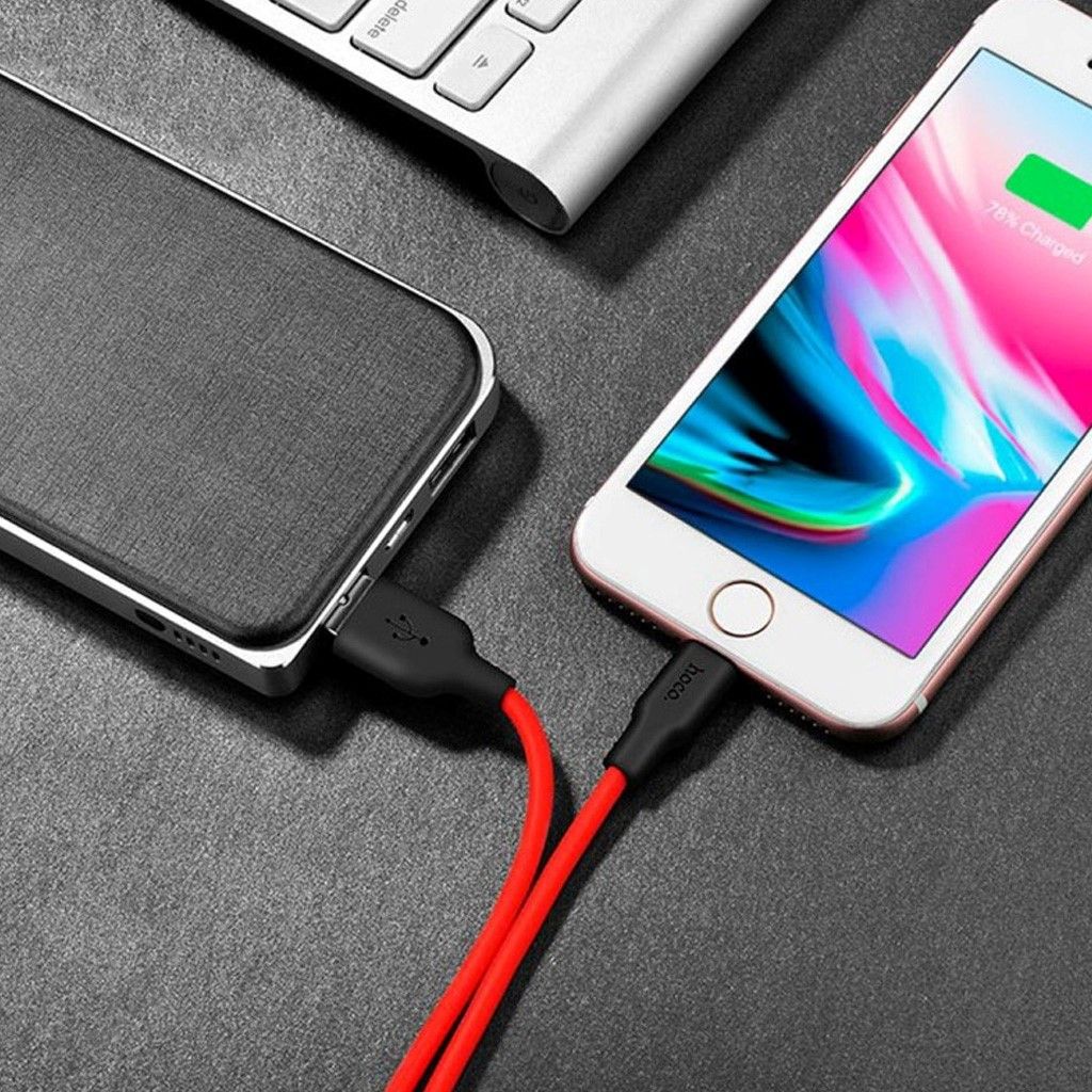 HOCO X21 Cable de carga lightning de silicona - Negro Y Rojo
