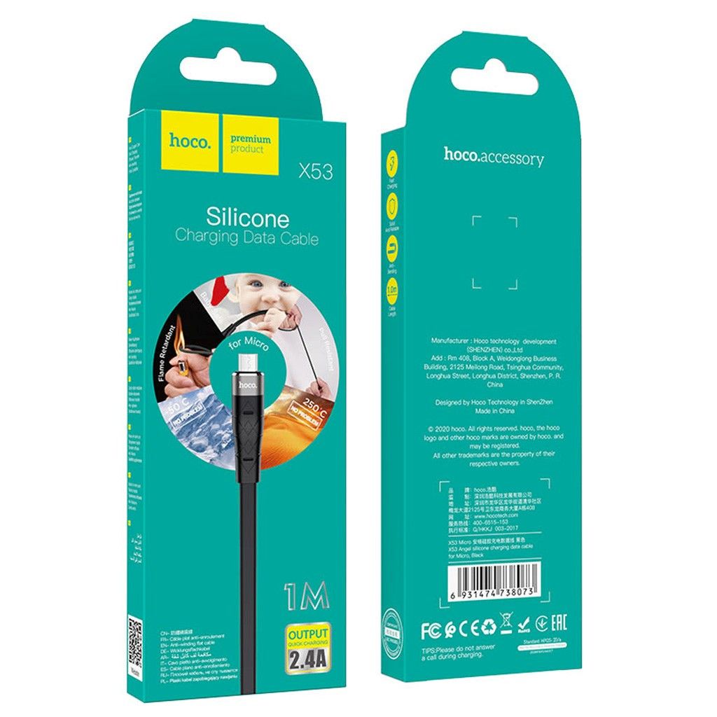 HOCO X53 Cable de datos de carga de silicona Angel para Micro - Negro