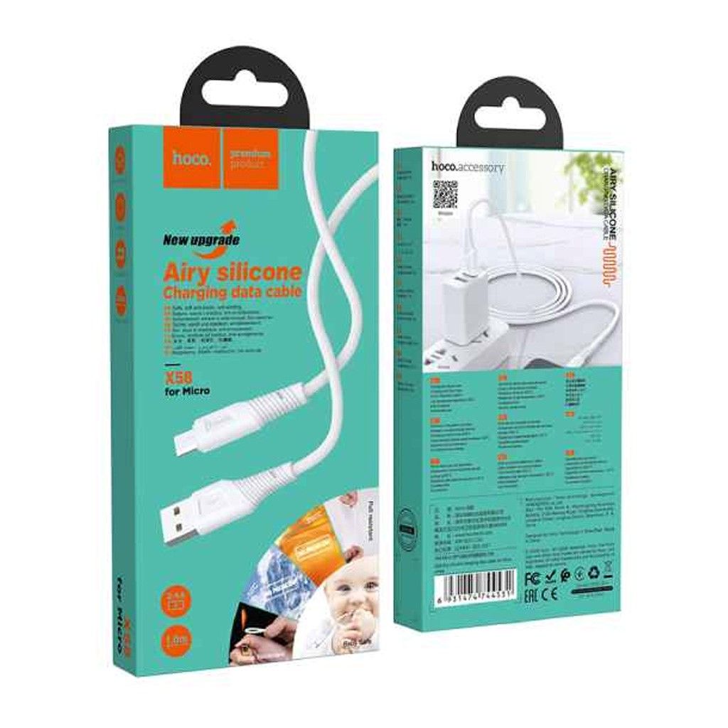 HOCO X58 Cable de datos de carga de silicona Airy para Micro - Blanco