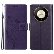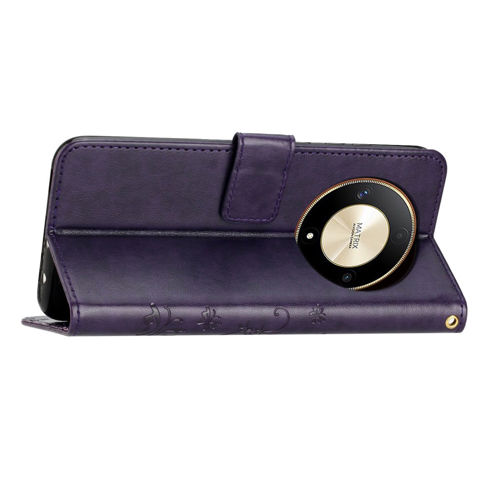 Honor Magic6 Lite 5G / X50 5G / X9b 5G Funda de cartera Funda Flip de piel de mariposa - Morado Oscuro