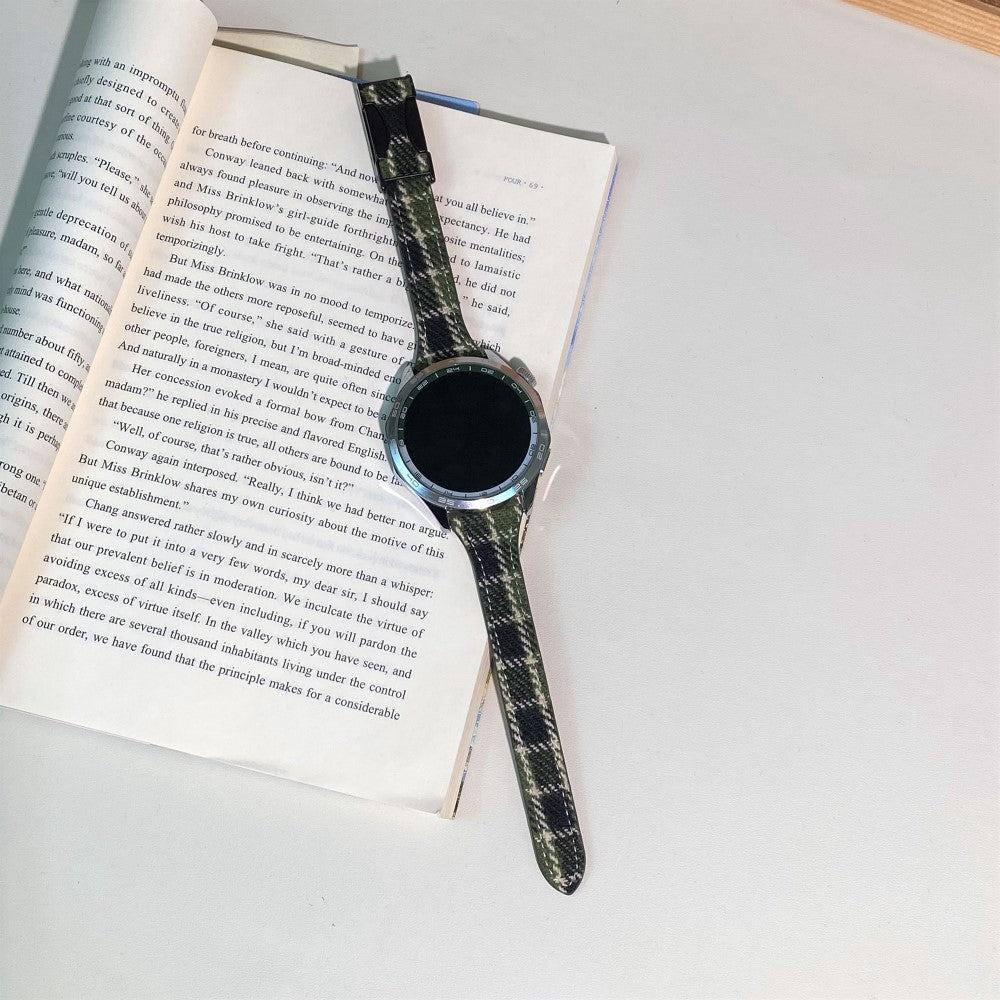 Huawei Watch GT 3 Pro 43 mm / GT 3 42 mm Correa de reloj universal de 20 mm con hebilla magnética y textura de lana a cuadros - Verde Negruzco