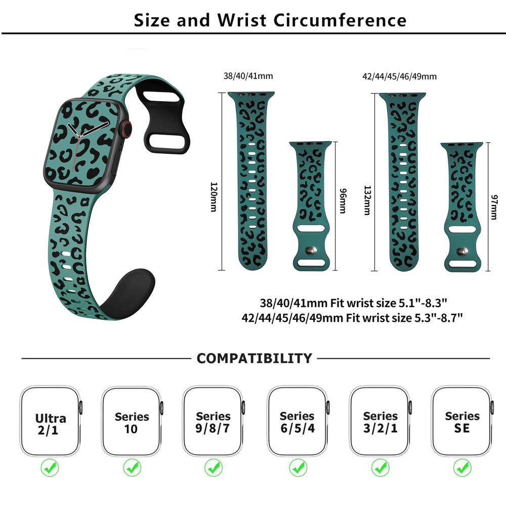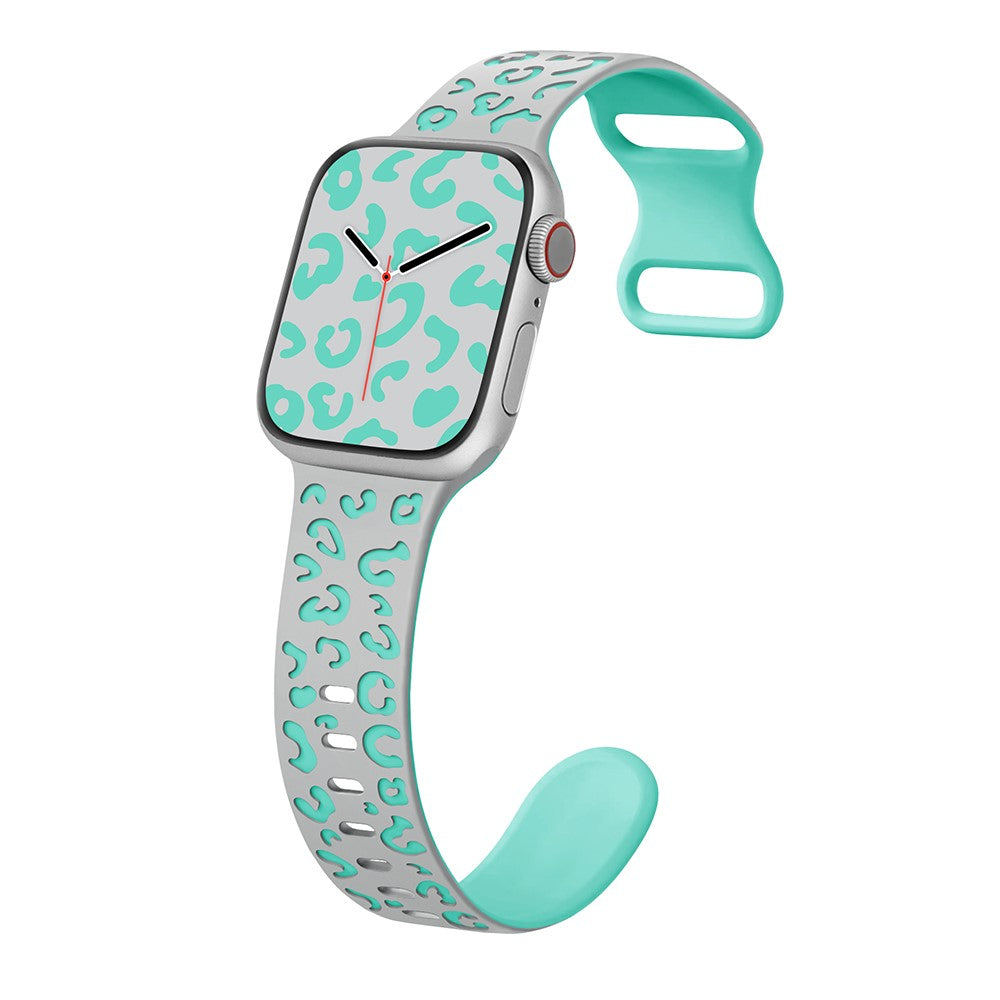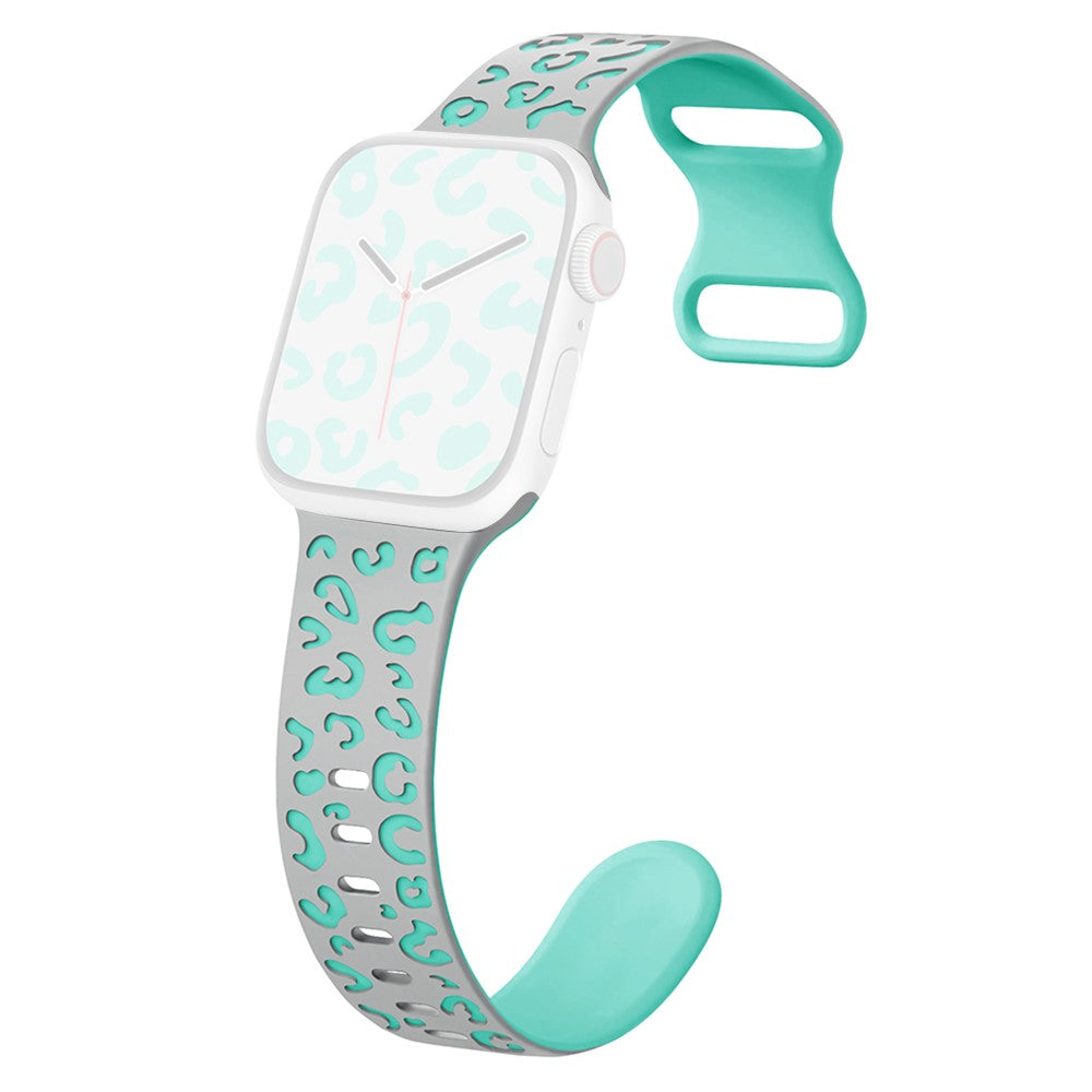 KALEBOL Correa de silicona de leopardo Apple Watch Series 10 42 mm de doble color - Gris + Cian