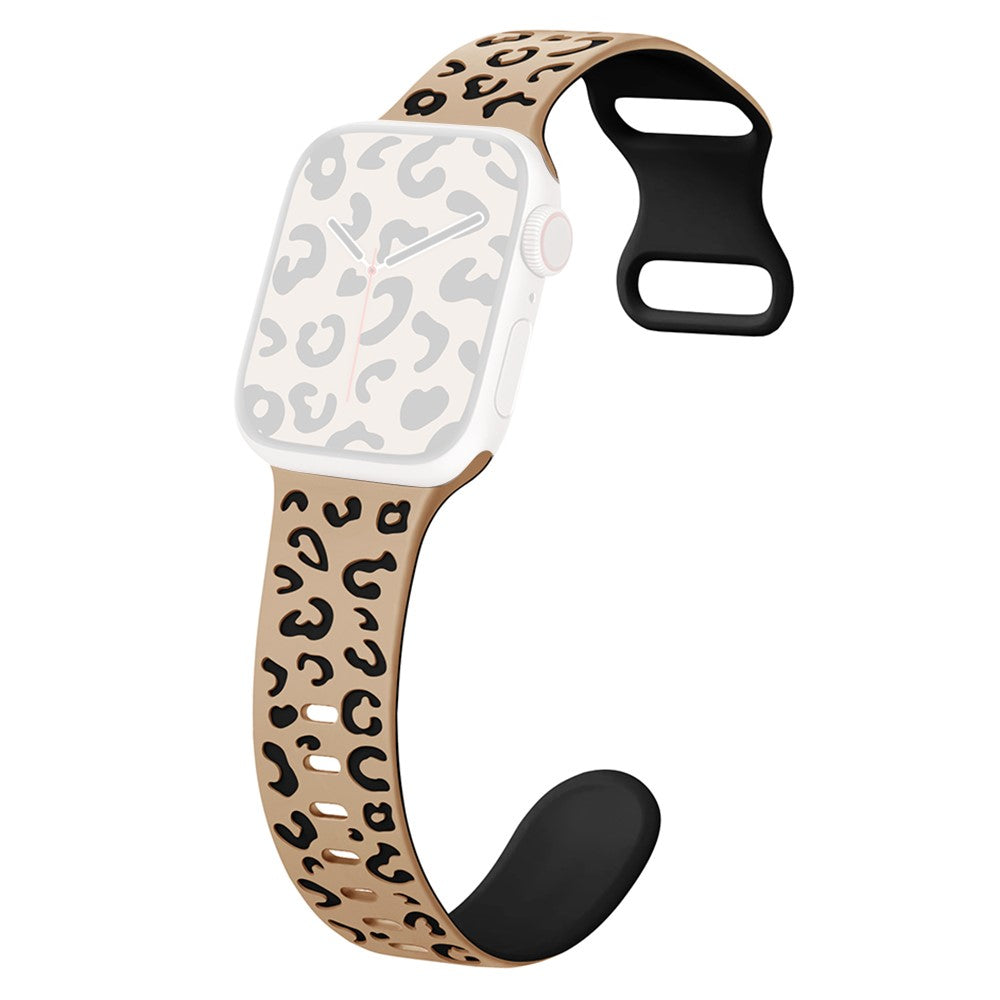 KALEBOL Correa de silicona de leopardo Apple Watch Series 10 42 mm de doble color - Té Con Leche + Negro