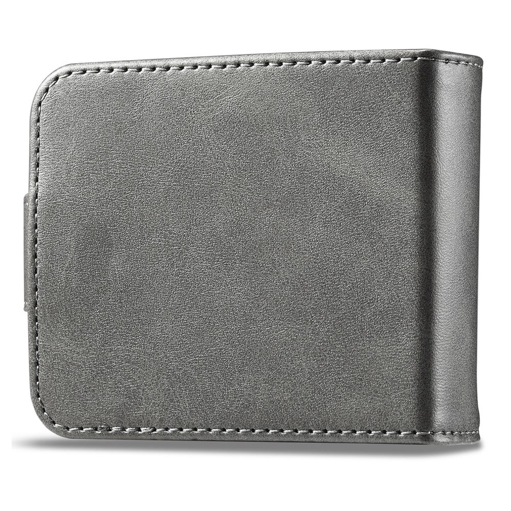 LC.IMEEKE Para Samsung Galaxy Z Flip6 5G Funda resistente a los arañazos Piel+Piel de becerro Textura Soporte Funda para teléfono - Gris