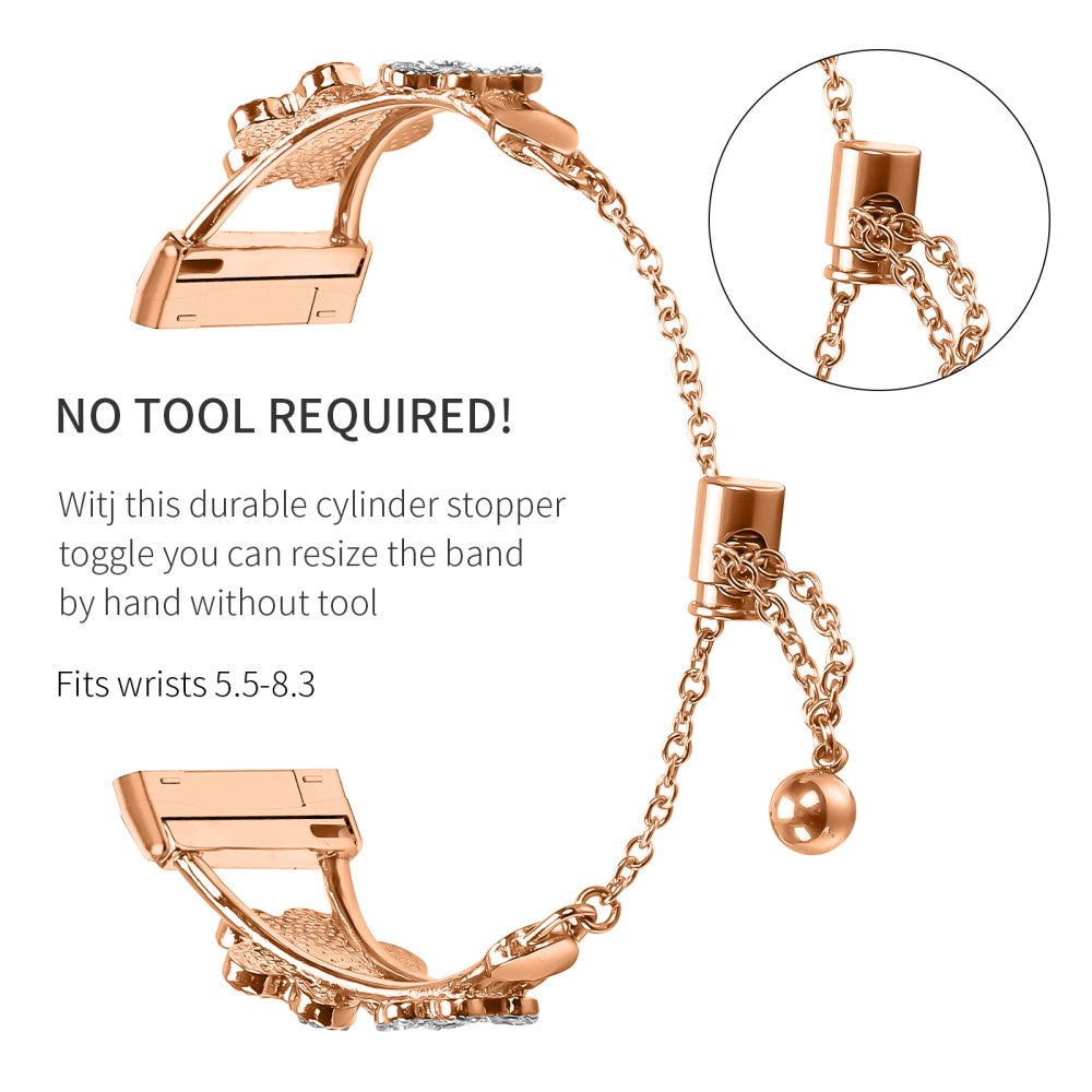Pulsera de metal con decoración de trébol y corazón de repuesto para reloj Fitbit Versa 3 / Sense - Oro Rosa