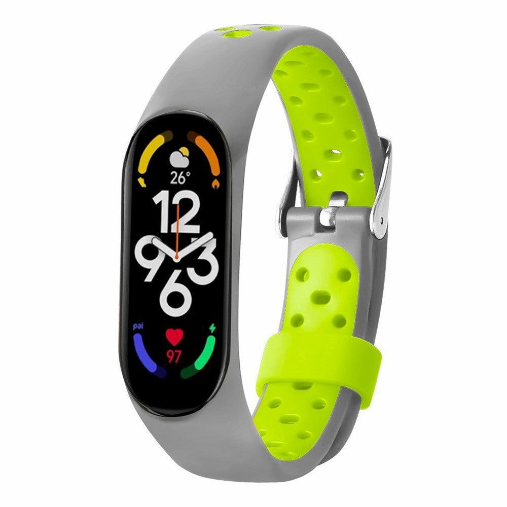 Xiaomi Mi Band 7 / 6 / 5 / 4 / 3 NFC Correas de reloj de doble color transpirables y flexibles - Gris+Verde