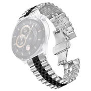 Yamay SW022 Correa de reloj con cierre de mariposa de acero inoxidable de 5 cuentas - Plata + Negro